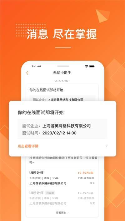 3.即时消息:平台及时给求职者推送系统通知和面试通知。