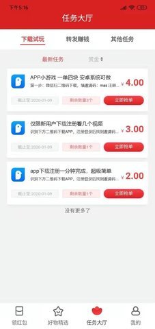 2、用户可以用简单的抢红包/抢任务方式赚取零钱!各种红包等你领取,高佣任务等你来完成!一部手机开始兼职赚钱之旅!