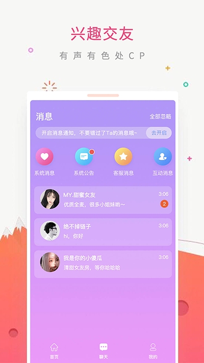 这里设计了一个任何人都能进入的公聊大厅,在大厅之中可以体验多人语聊的乐趣;