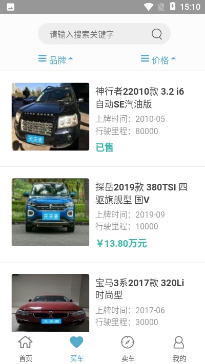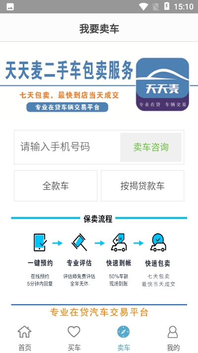 天天麦二手车app是一款在线二手车交易市场,在这里有很多种类的二手车任你选择,各种价格的都有,261项专业检测,安全放心,并且平台还提供包卖服务,当天就拿到钱,非常的安全,专业二手车市场,快来一起下载使用吧!