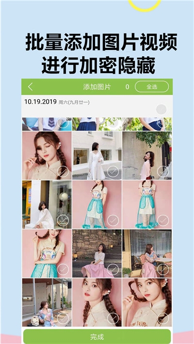 批量添加:可单张或批量隐藏照片视频,还原(取消隐藏)照片视频或编辑照片,操作简便,节省时间,方便