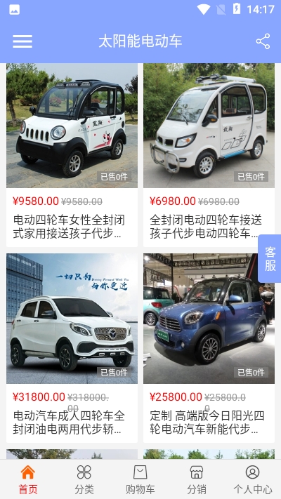 太阳能电动车app是一款大型品牌太阳能电动车购物商城,线上线下资源整合,满足用户的一切需求,价格公正合理,太阳能电动车绿色环保非常提倡,平台上还有一些制造商的信息,快来一切下载体验吧!