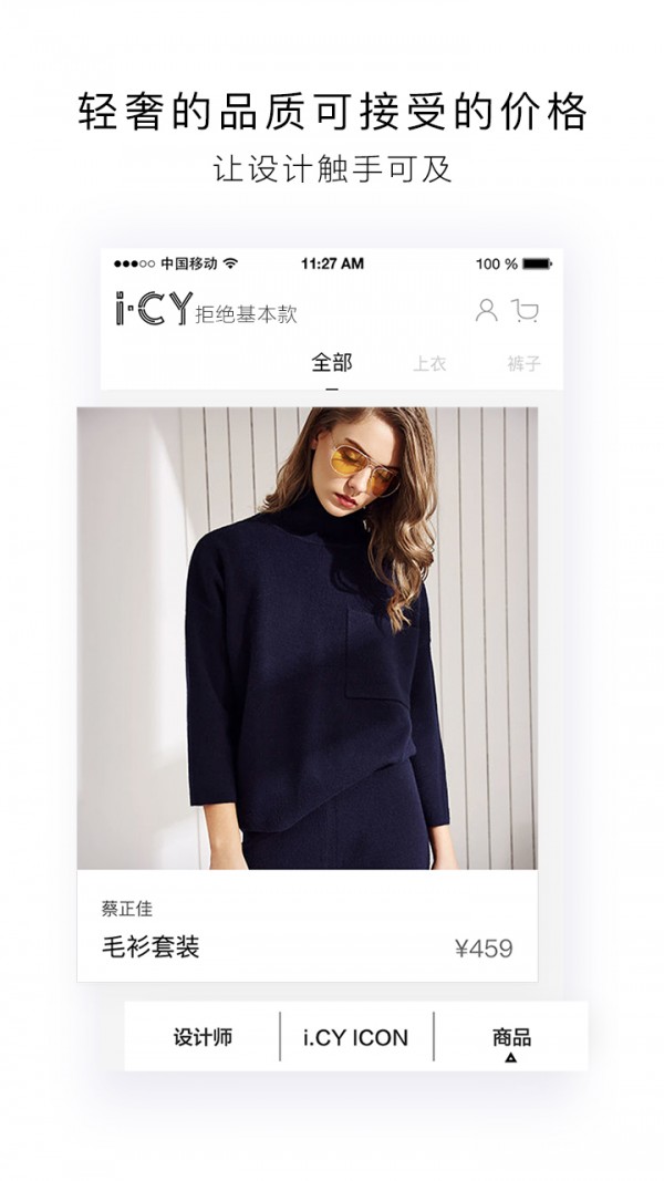 ICY是一款购物的软件,软件里面有全球的原创设计师,所有的衣服都是他们自己设计的,不会撞衫哦,用户可以在软件里用自己心理价格买到自己喜欢的衣服,给用户的购物带来不一样的体验,爱买衣服的宝宝们看过来,直接来下载。