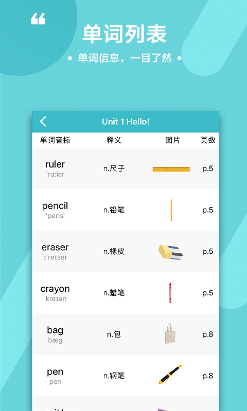 2、每个单词都有外教讲解发音、自然拼读和英语释义以及句子应用,每个单词也都有世界记忆大师的讲解和配图;