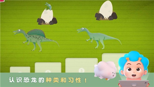 多类教育游戏可以玩耍,如绘制翼龙的捕猎路线,拼装恐龙骨架等,趣味的玩耍;