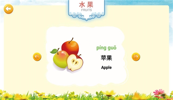 应用包含动物、蔬菜、水果、生活物品、行为习惯等分类,更多的了解生活中的事物极其发音。