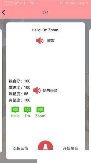 智能评测系统精确到各单词评分,全面帮助孩子提升英语口语。