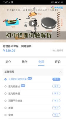 精品课程中包含了初中物理、化学自主学习课程和实验演示课程,将课本知识点进行细致的拆分,和精细的解读。