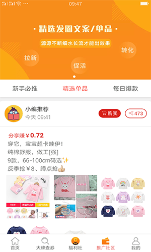 4、圈子中可以收看购物达人推荐商品,进入商品主页。