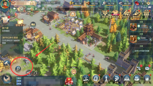 2、解放城邦后该如何打叛军升级:在主城内点击界面左下方的搜索按钮,如下图所示
