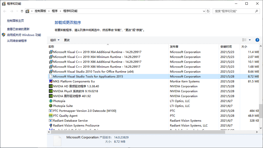 进入到程序和功能,找到 Microsoft Visual Studio Tools for Applications 进行卸载。在重新启动 Solidworks 2017 的安装程序即可;