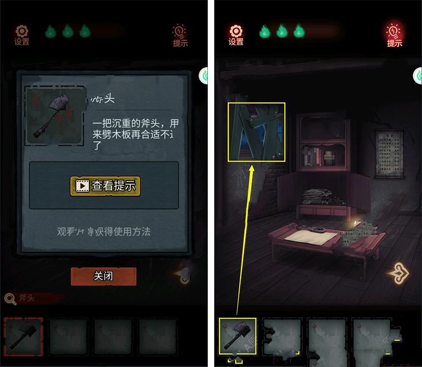 29.用【斧头】劈开窗户的木板,从窗户离开。