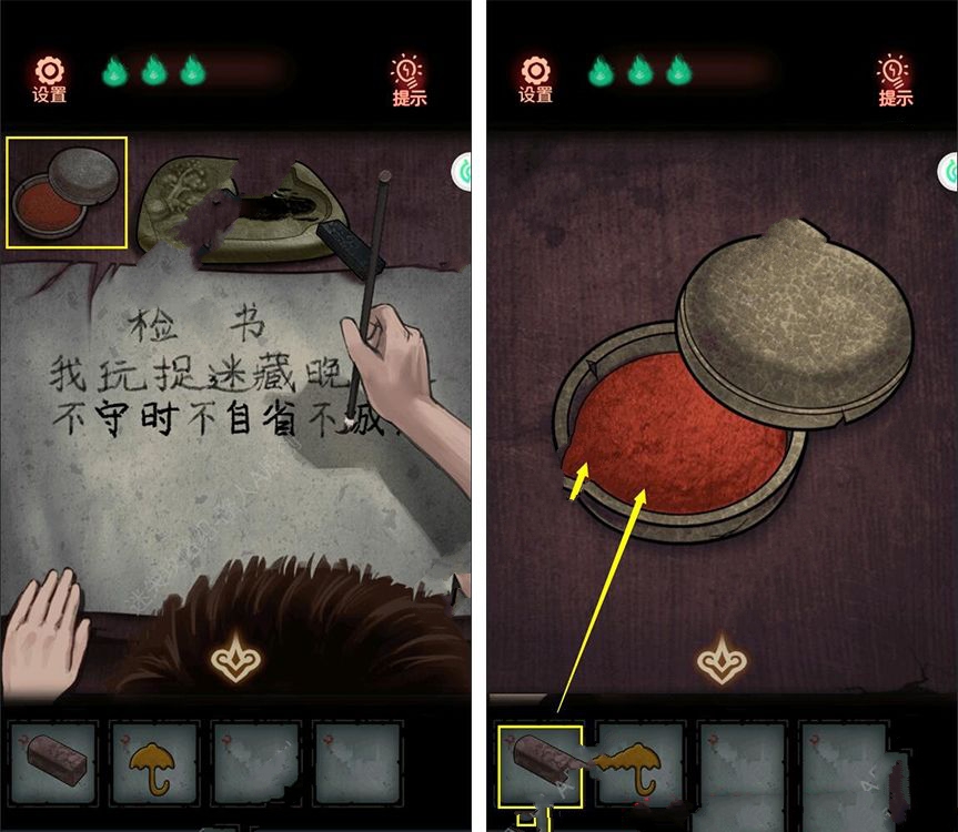 17.拾取梳妆台上的【水杯】,以及抽屉里的【毛笔】、【针】。