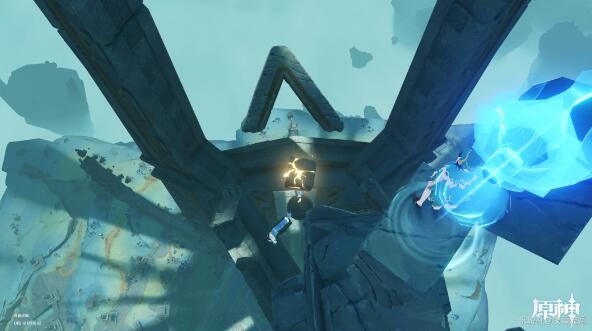 2、然后要到达最高的位置才能算,在中心发光的位置上方,飞到上面才能触发成就,一般玩家以为到达三根柱子的上面就可以了,但是发现并没有完成成就任务,所以一定要到中心的最高点才可以。