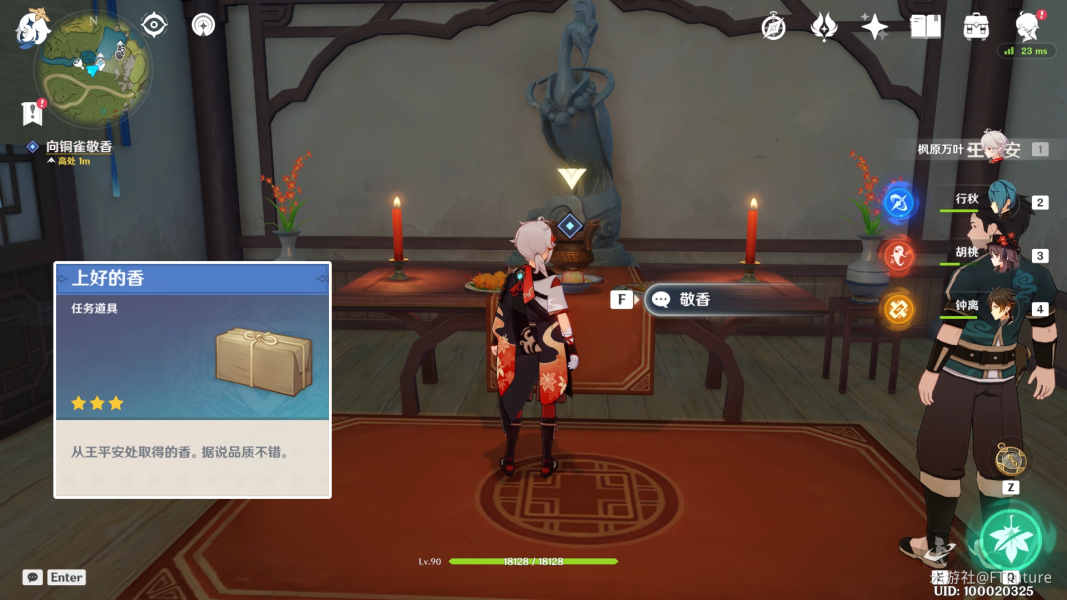 未来如果想要再次敬香,直接和王平安对话,选择“能给我几支香吗”即可。我已经预感到这里即将发展为新的玄学圣地(并没有)