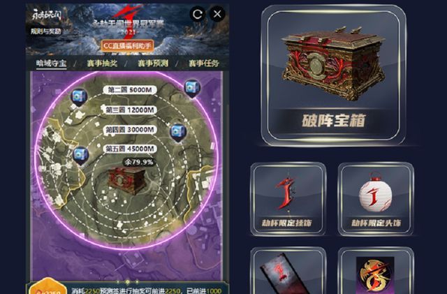 在比赛开始之前,进入直播间的话,可参与赛事竞猜赢取预测签,这个预测签可用于后续的抽奖,里面包含了:劫杯赛事限定挂饰,以及珍稀长枪皮肤,英雄皮肤,3060电竞主机等。整体看上去相当豪华,特别是挂饰,还用龙和凤的交战,作为主体的核心设计新颖度十分高,相信不少白嫖党,早已是蠢蠢欲动了,并且在积累足够抽奖次数后,是100%必得奇珍宝箱的,所以绝对不要错过。