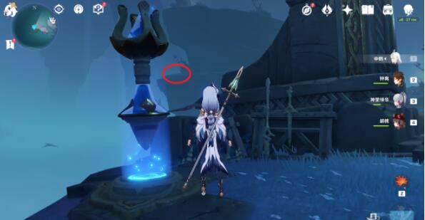 3、玩家们将传送到歧之岛,我们前往下面这张图的标记的位置;
