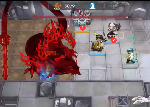 BOSS第三条命前如下图所示位置部署史尔特尔,同样开启史尔特尔“黄昏”和塞雷娅“钙质化”蒸发掉。