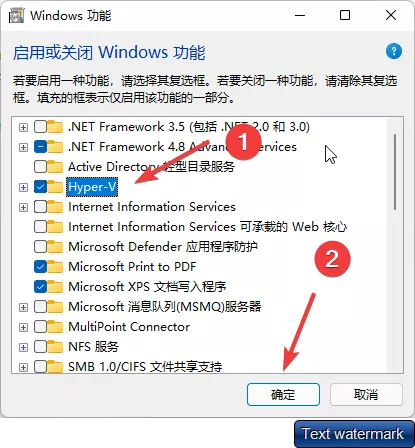 1. 任务栏放大镜图标,搜索控制面板进入,依次选择程序--启用或关闭windows功能,windows功能窗口中,勾选【Hyper-V】和【虚拟机平台】,点击确定;