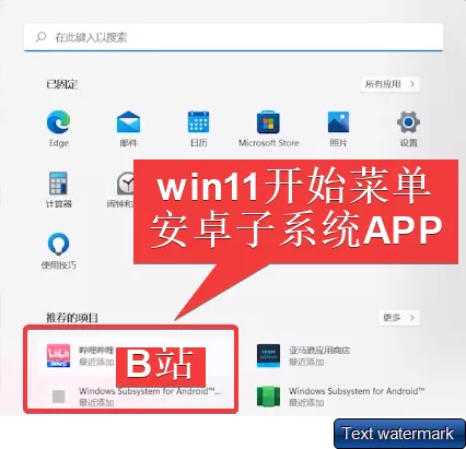 3. 执行安装成功后,在win11开始菜单中,就能看到刚安装好的安卓子系统APP啦!