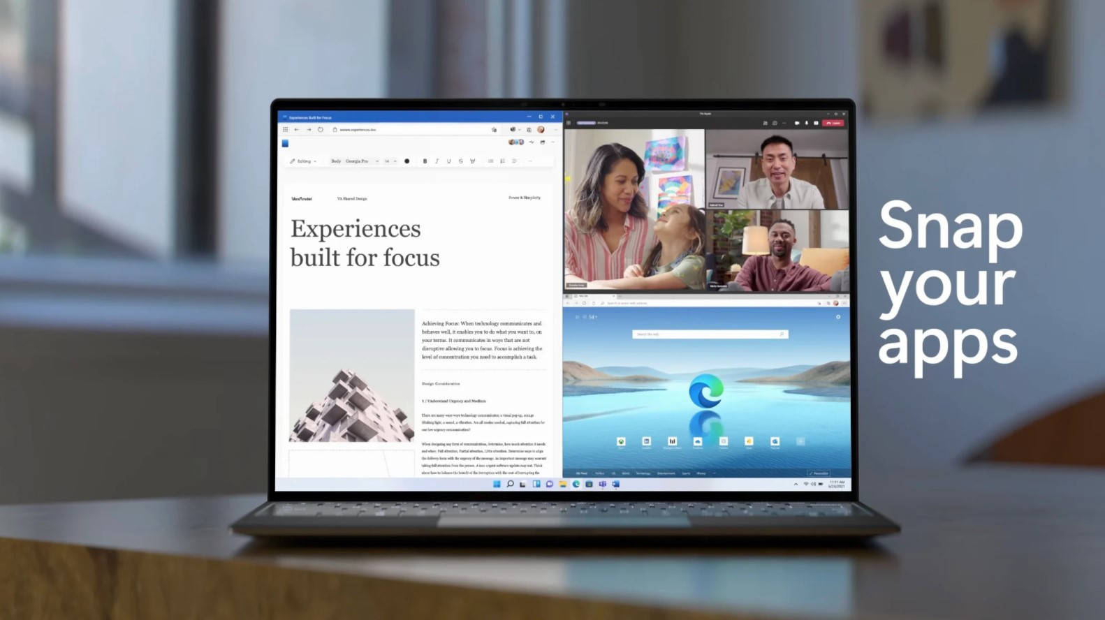 Windows 11 针对分屏操作进行了优化,,现在窗口最大化按钮中集成了预设多种布局的多窗口排列功能,一键分屏十分方便;还可以创建多个虚拟桌面并设置不同的主题、壁纸,对应工作、娱乐等用途。