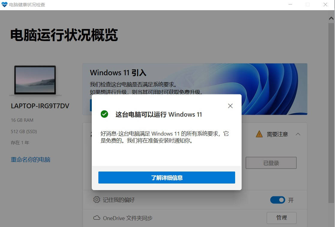 不确定设备是否满足要求的可以在官网下载电脑健康状况检查应用进行查看。