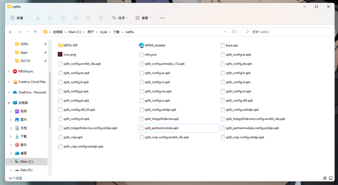 例如在上图展示的 Netflix 拆包文件中,我们一般会用到的 apk 文件除了 base.apk 还包括: