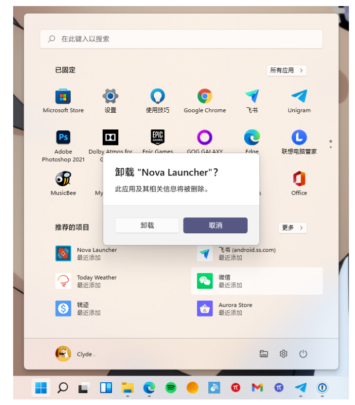 最后,Android 应用的卸载也可以直接通过开始菜单来完成,卸载体验与 Windows 原生应用无异:
