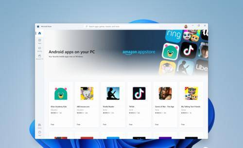 另外,微软商城依照着新的 UI 重新进行了设计,最重要的是终于支持了Android 应用的直接运行。借助和亚马逊的合作以及英特尔 Bridge 技术,用户可透过微软商城搜索亚马逊应用商店的内容进行 Android 应用的安装后,就能直接在系统内运行这些 app 并且也原生支持全新的 Snap 布局特性。