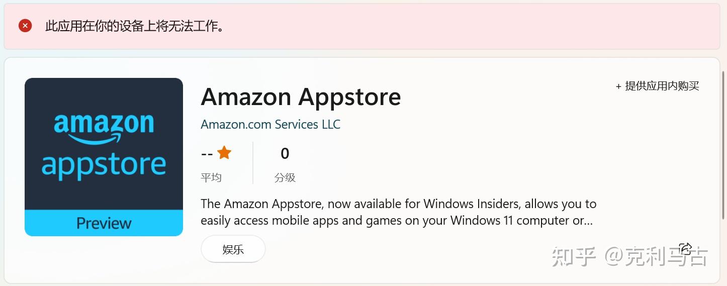 二、尝试安装安卓子系统1、第一回合:尝试安装亚马逊应用商店