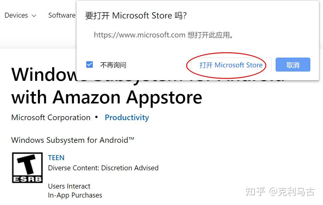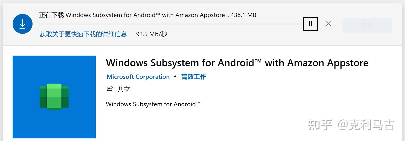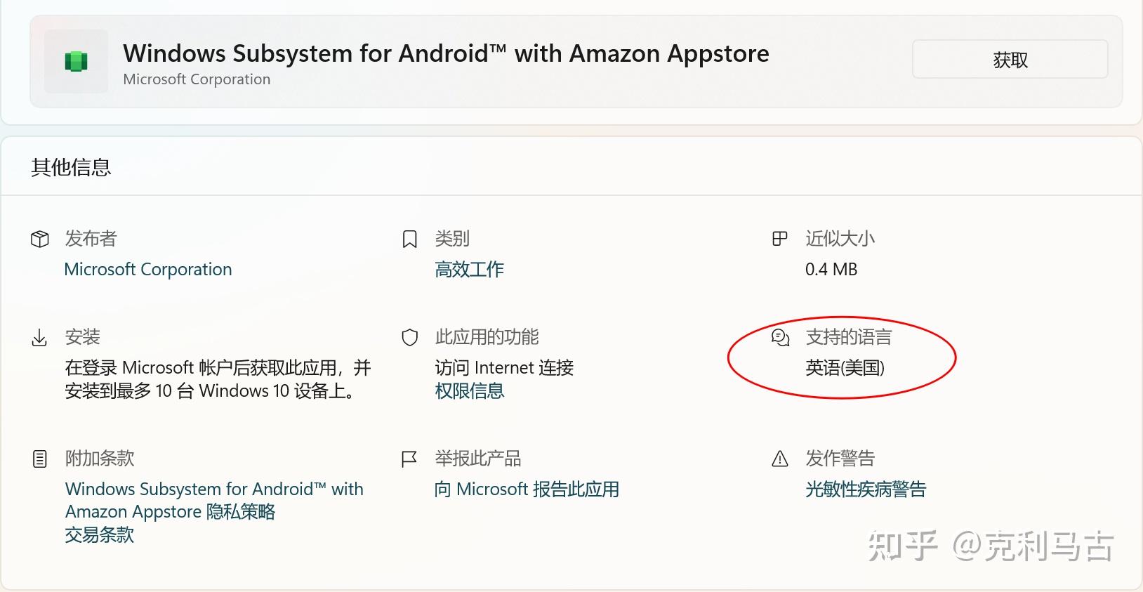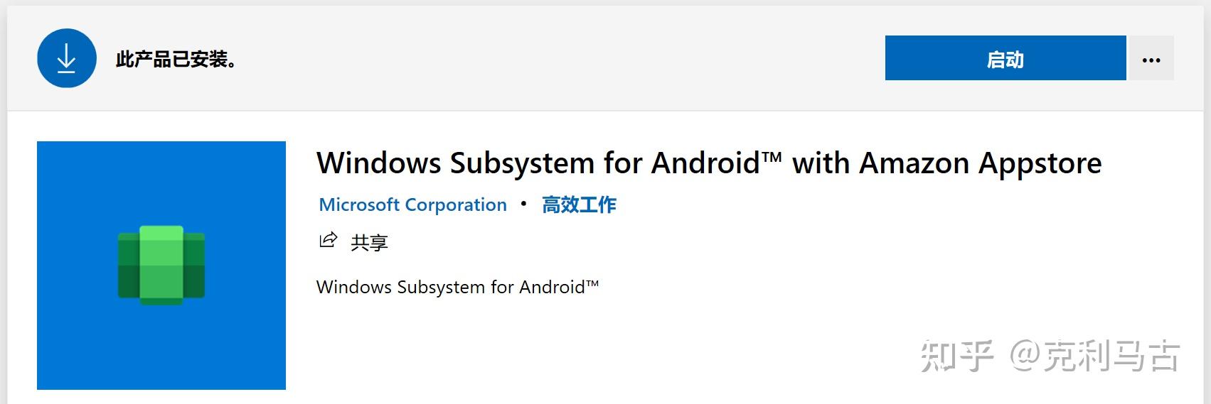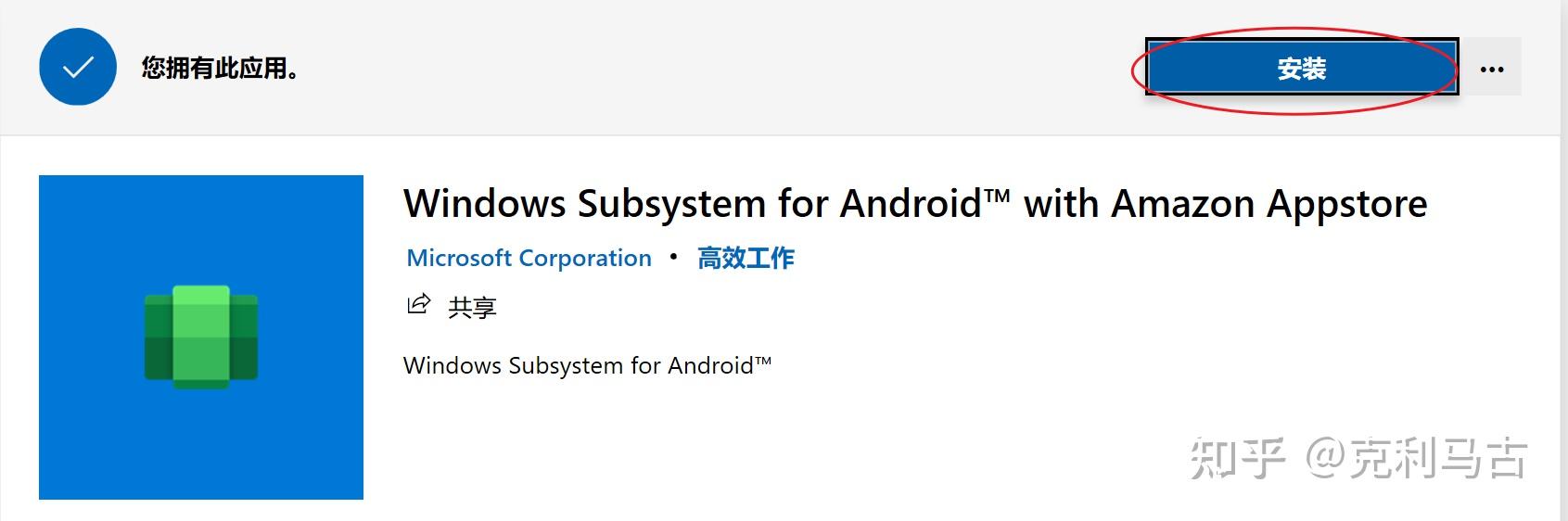 然后使用下面的链接直接安装 Windows Subsystem for Android™ with Amazon Appstore.