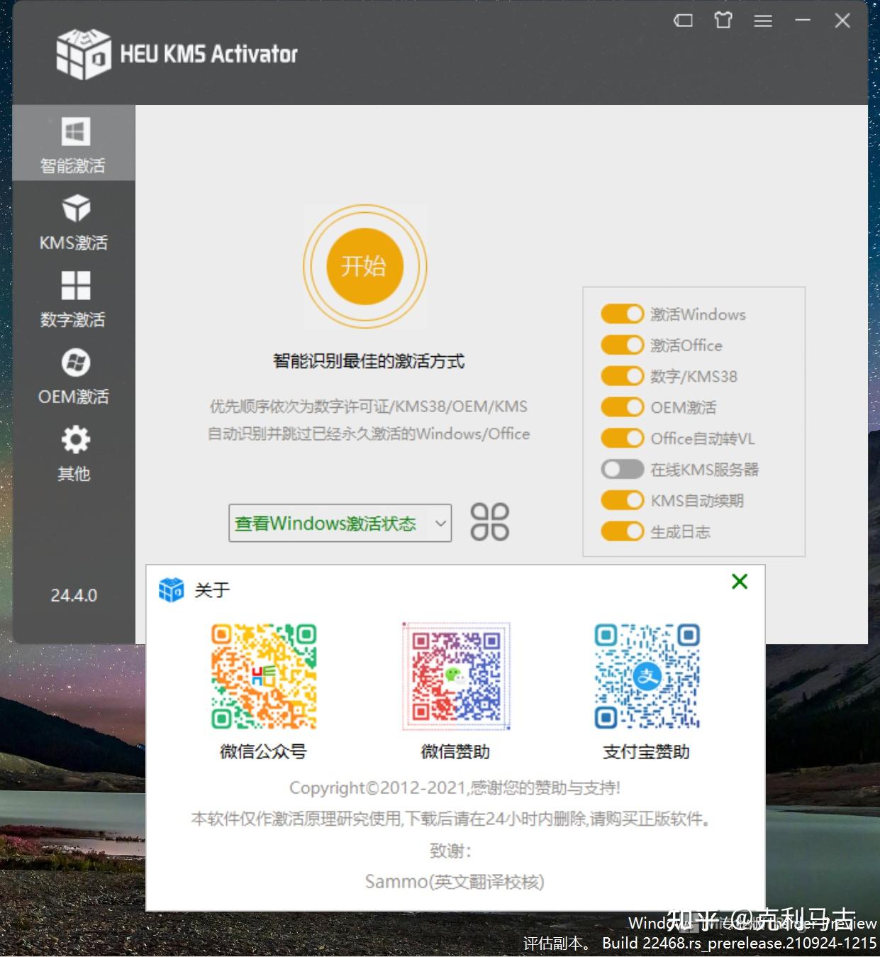 激活使用 HEU KMS Activator v24.4.0(关注图中的微信公众号获取):