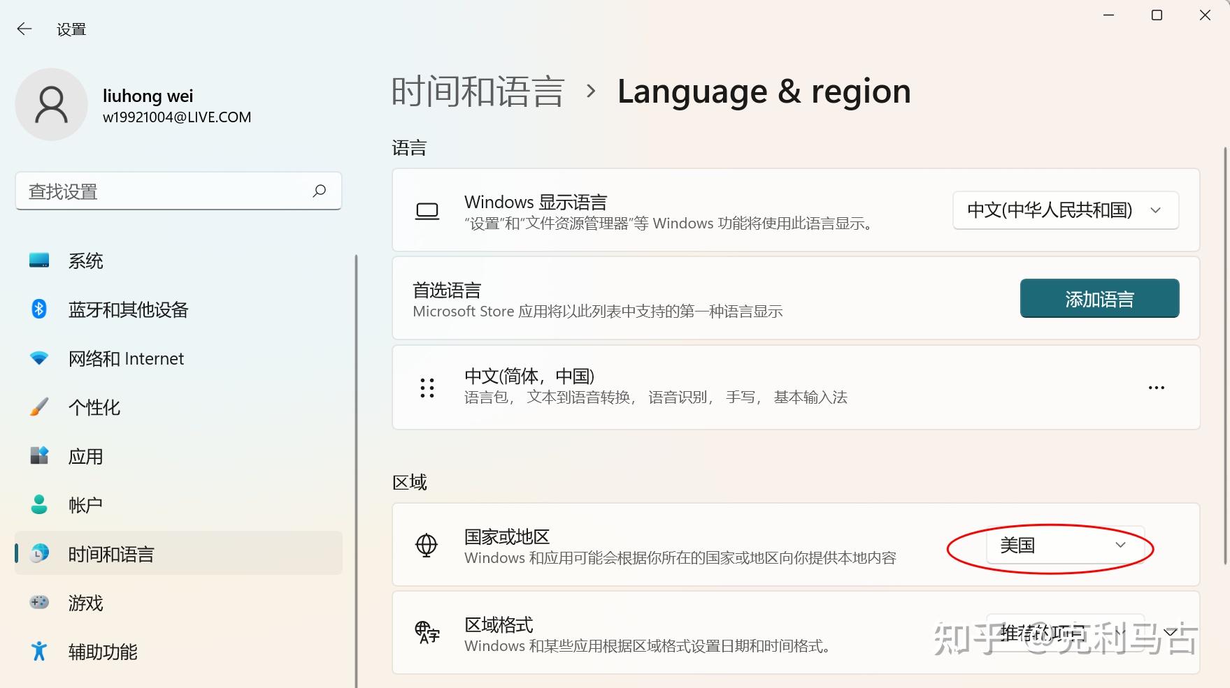 其中有一个步骤是要将 “国家或地区” 切换为美国,我们也来切换一下试试: