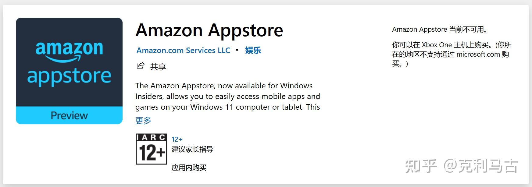 在应用商店打开了亚马逊应用商店,但是显示当前不可用: