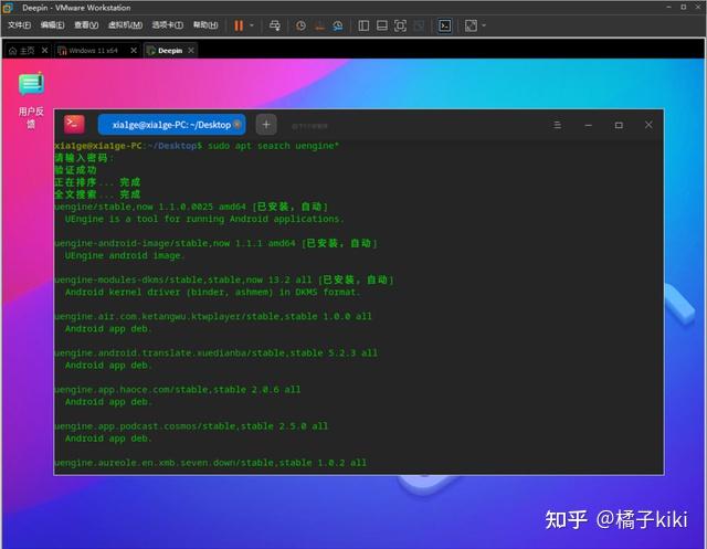 但是我们可以在终端里面输入命令:sudo apt search uengine* 来查看安卓应用列表。