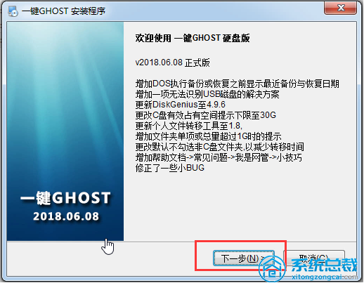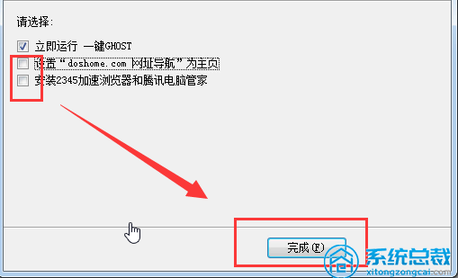 4、提议去掉启用2项广告宣传,随后点一下进行。那样一键Ghost工具就安装成功了。