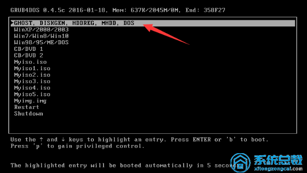 10、然后系统会自动重启,跳到一键恢复系统的菜单,大家选择 第一项“GHOST,DISKGN”。