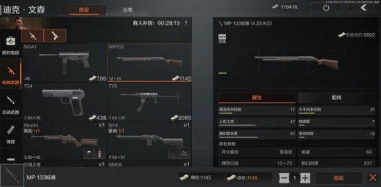迪克·文森处可购买MP133MP133是游戏中入门级的霰弹枪,各项属性也比较低。建议大家直接用原厂版来对付游荡者就好。如果非要改装的话,也可以将护木由木护替换为塑护后加装一个前握把减少后坐力,也可以花一点钱将弹仓扩充至8发,增强一点续航。总的来说不推荐大家对它投入太多。