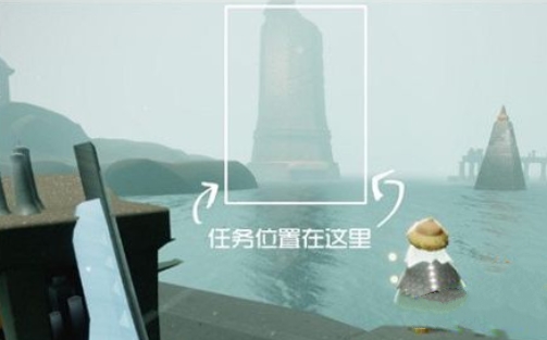 3、站在船上查看任务的目标,站在船上确定高塔的位置;