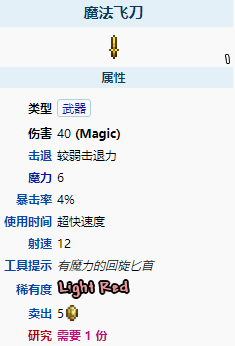 泰拉瑞亚魔法飞刀怎么样。作为游戏中,困难模式的武器,想必还有很多玩家们不是很了解,那么接下来就带给各位玩家们泰拉瑞亚魔法飞刀图鉴介绍,不要错过。