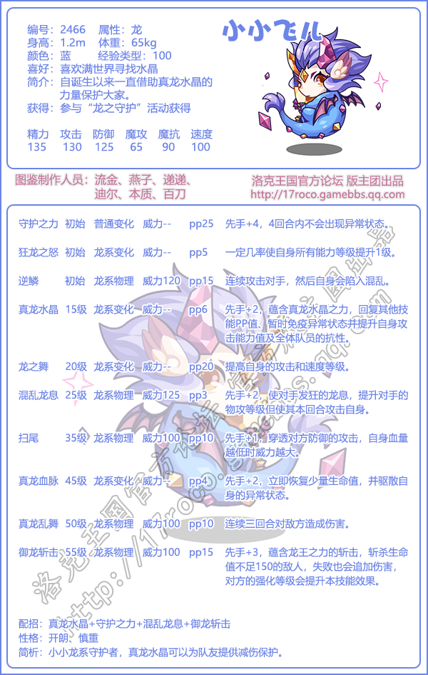 简析:小龙系守护者,真龙水晶可以为队友提供减伤保护。