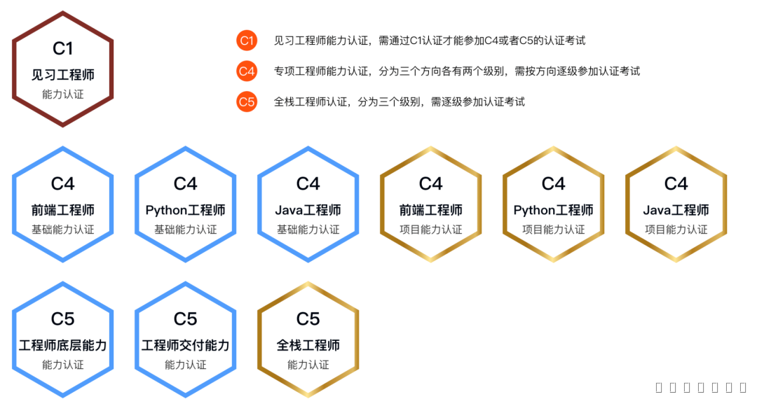 考试内容对标名企JD,侧重考核工程化/交付能力,更受企业青睐,通过人员,考试通过即获得相应级别的技术能力资格。