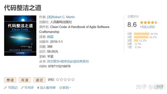 这本书重在对细节的关注。书的编排极其合理,从最小的点开始一点点往大处讲。感觉对刚开始工作的小朋友们,代码看得、写得还不够多,读设计模式之类的书可能还没什么体会。但这本代码细节的书,却是能立竿见影,直接用到工作中去的。
