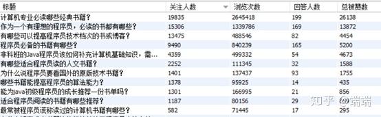 主要数据来源来自知乎中关于推荐程序员书籍的25个问题和86个文章专栏,以及这25个问题下1000+个回答里的内容; 下面的截图是其中一部分的标题;根据这个问题有多少关注做了个倒序;