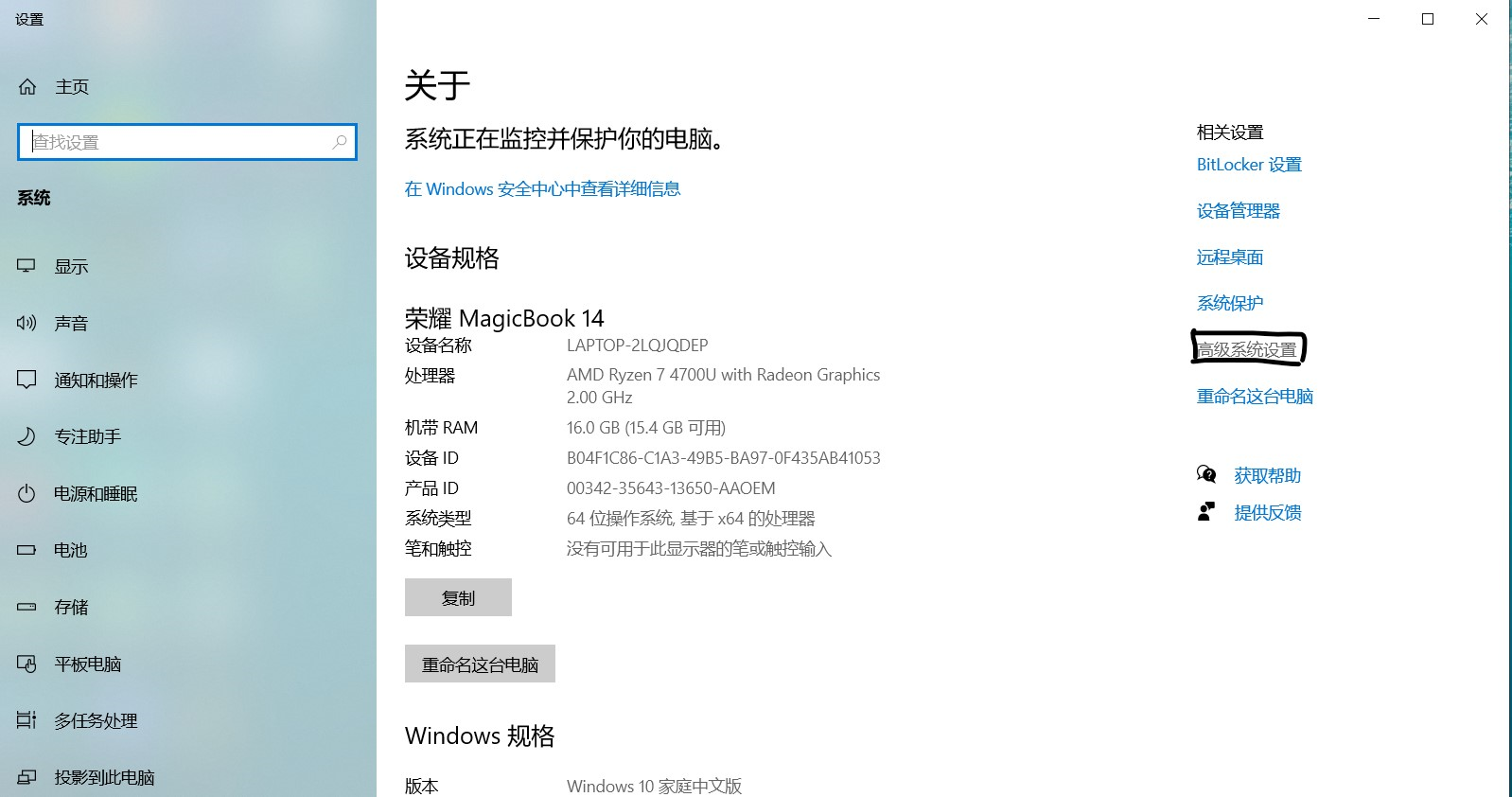 1、右击此电脑点击属性进入如图界面,点击高级系统设置