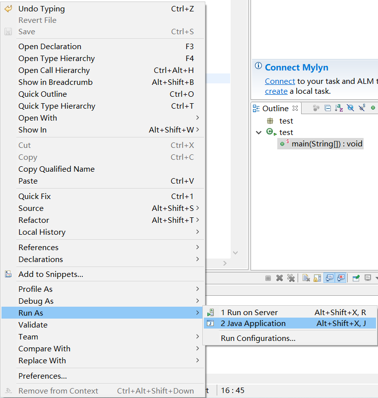 1、在编码区输入之前的代码,右击编码区,点击Run As,再点击Java Applicaton,如图一,就可以看到运行结果,如图二