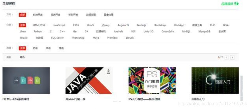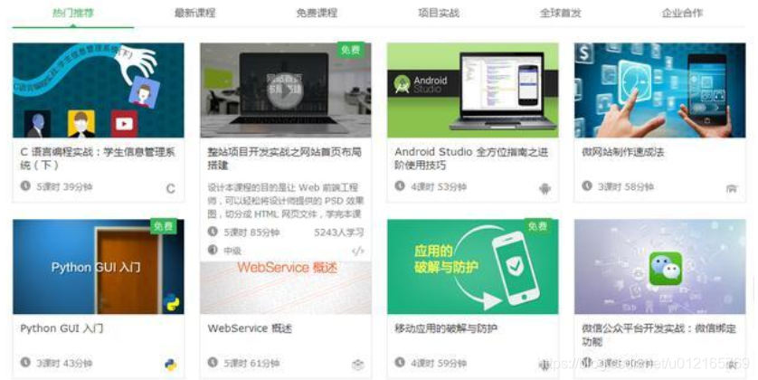 相信大家对这个自学网站不陌生,他是由网易公司打造的在线实用技能学习平台,该平台于2012年12月底正式上线,主要为学习者提供海量、优质的课程,用户可以根据自身的学习程度,自主安排学习进度。立足于实用性的要求,网易云课堂与多家教育、培训机构建立合作,课程数量已达4100+,课时总数超50000,涵盖实用软件、IT与互联网、外语学习、生活家居、兴趣爱好、职场技能、经融管理、考试认证、中小学、亲子教育等十余大门类。8、慕课网