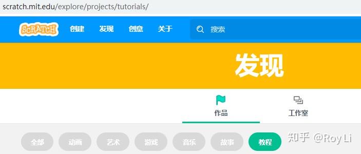 在官网点击“发现”,然后再点击“教程”标签,就可以发现数以千计的教程。也就是说自学Scratch的问题并不是没有教程,而是有太多的教程,但是这些教程是由不同的机构或者爱好者贡献的,并不成体系,家长需要具有一定的鉴别能力才能从中选出好的课程。