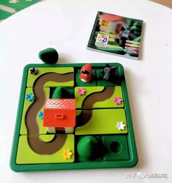 我们很多人家里有的Smart Games的小红帽桌游,也特别受孩子喜欢。摆放大树,挑选关卡,然后利用拼板,创建连接小红帽到房子的路径。吉吉特别喜欢和我计时比赛。