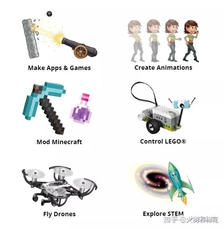 孩子在学习编程的时候,可以创造故事,动画和游戏,通过这种方法,他们可以把想法表达出来并与世界分享。